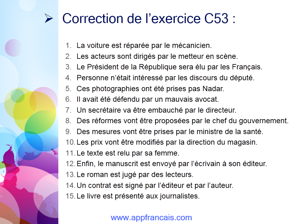Transformation de la voix active à la voix passive :